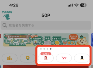 モッピーを経由してから使うだけで、ポイントがつきます